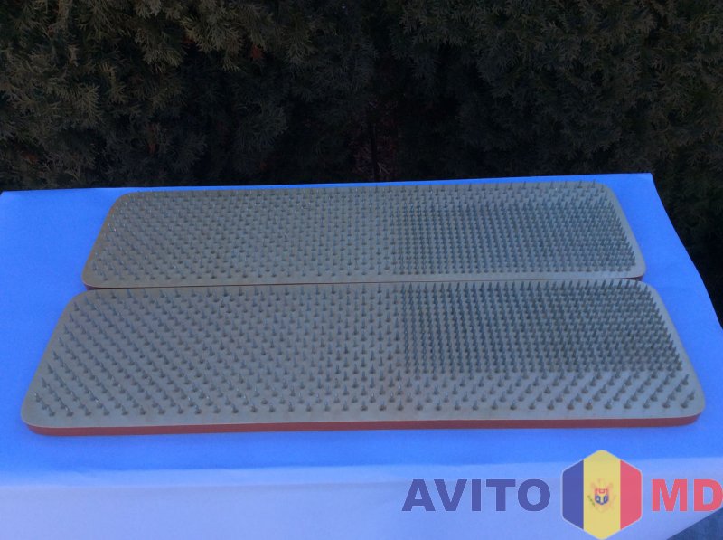 Шаг для стоп 10 мм, для спины 15 мм ( можно и стоять) Гвозди оцинкованные, винтовые (восходящий поток), длина 30 мм. Покрыты яхтным лаком в три слоя.
